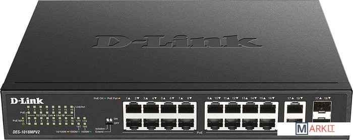 Markit » Коммутаторы » Неуправляемый коммутатор D-Link DES-1018MPV2/A1A